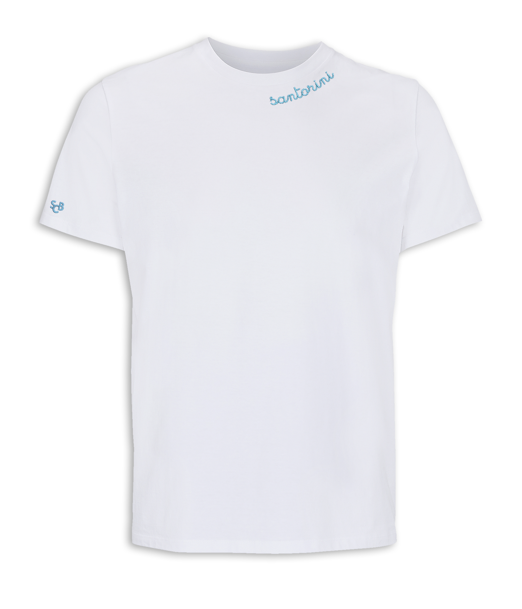 100% cotone biologico pettinato, vestibilità over, collo a giro a costina, taglio moderno e vestibilità comoda, ricamo a collo “santorini”